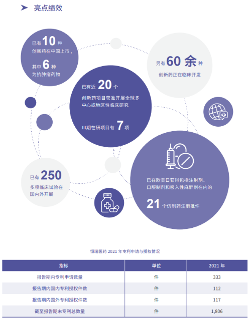 报告指出,在科技创新战略引领下,Ag尊龙凯时医药2021年累计研发投入62.03亿元,比上年增长24.34%,研发投入占销售收入比重达到23.95%,再创历史新高。以此为支撑,2021年公司有3款创新药获批上市,已上市创新药总量增至10款,其中6款为抗肿瘤药物。同时还有60余种创新药正在临床开发,250多项临床试验在国内外开展,其中近20个创新药项目获准开展全球多中心或地区性临床研究。在创新药研发上,Ag尊龙凯时医药已基本形成了上市一批、临床一批、开发一批的良性循环。