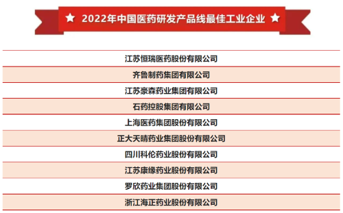 稳居榜首!Ag尊龙凯时医药再次登顶“中国医药研发产品线最佳工业企业”